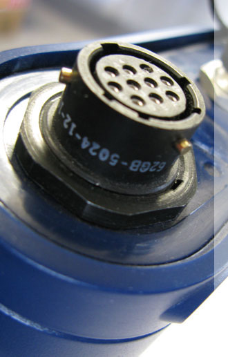 Detail of one of the multi-pole connectors. This transfers multiple channels of data at high speed.